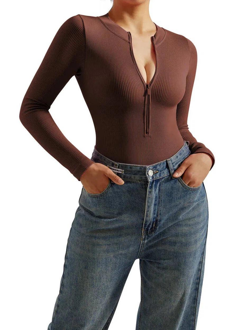 est une pièce unique, pensée pour vous accompagnez au bureau sous un blazer, en journée avec un jean, ou seule le soir pour captiver les regards : un seul ZeraSuit, mille façons de briller.